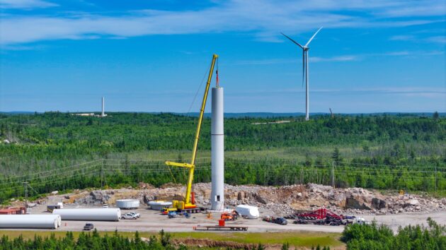 About: Irving’s Liebherr LTM 1400-7.1 hoisting the second tower section of a wind turbine for part of the Benjamin Mills Wind Project in West Hants Municipality, Nova Scotia.