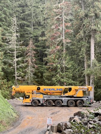 About: Sterling’s LTM 1250 navigated steep climbs and descents across narrow, muddy one-way roads for a riverbank set-up 40 kilometres into the bush.